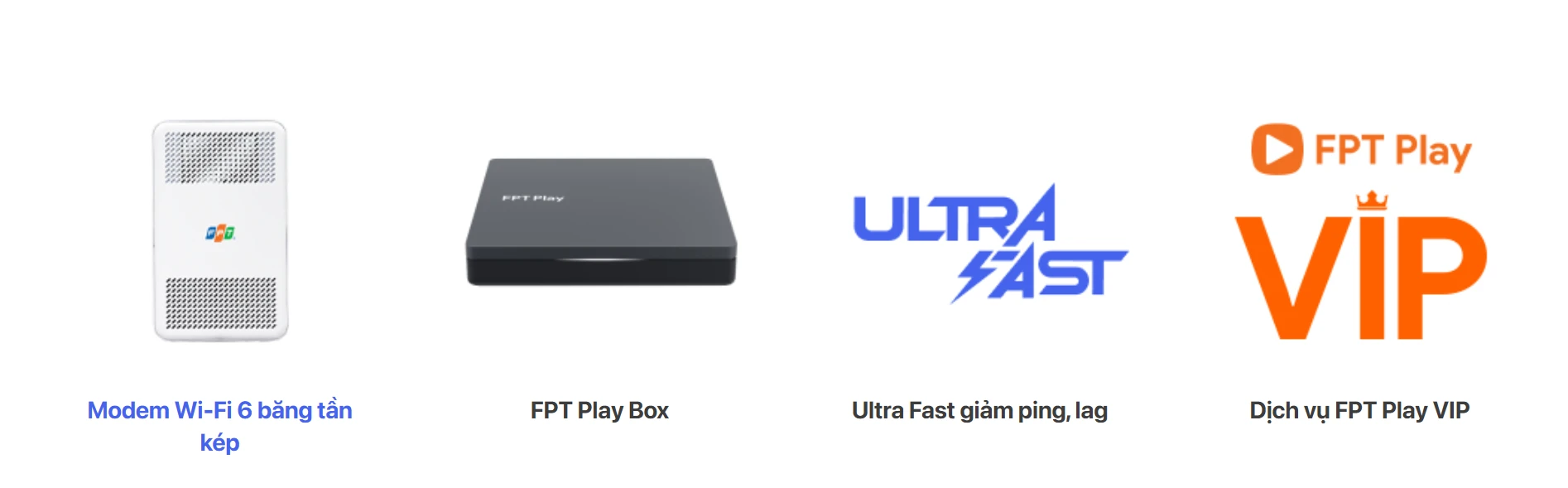 Modem Wi-Fi 6 & FPT Play Box Tốc độ lên đến 1 Gbps 130+ kênh truyền hình giải trí Tích hợp Ultra Fast Giảm độ trễ tới 16ms |