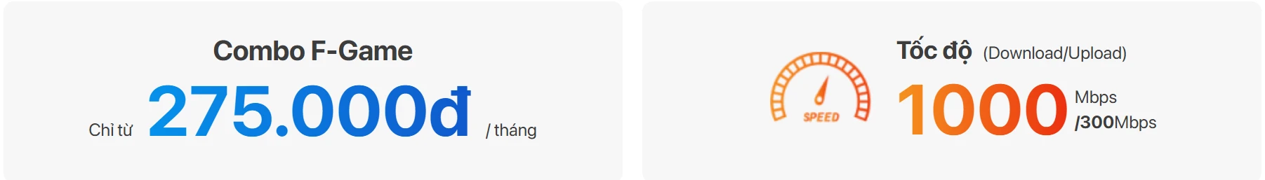 Gói Combo F-Game mang đến Internet tốc độ cao, ổn định, giảm độ trễ tới 16ms, lý tưởng cho gaming không giật lag và 30+ tựa game hot. Xem hơn 130 kênh truyền hình hấp dẫn, cập nhật Esports và các giải đấu trực tiếp đầy kịch tính. Nhận ngay 90N trải nghiệm F-Safe cơ bản - Quản lý thiết bị truy cập mạng dễ dàng - Đặt lịch chặn Internet và lọc nội dung cơ bản ngay trên Hi FPT (Áp dụng Hà Nội & HCM)