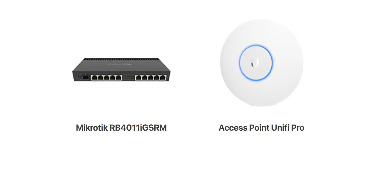 Trang bị Modem Wi-Fi 6 & 1 thiết bị Access Point Tốc độ (Download/ Upload): 800Mbps/ 800Mbps Trang bị Modem Mikrotik RB4011iGSRM Tích hợp kèm IP Tĩnh với giá trọn gói 3.800.000đ/tháng |